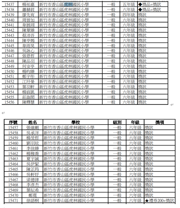 恭喜以下同學榮獲114年COOL ENGLISH口說王獎