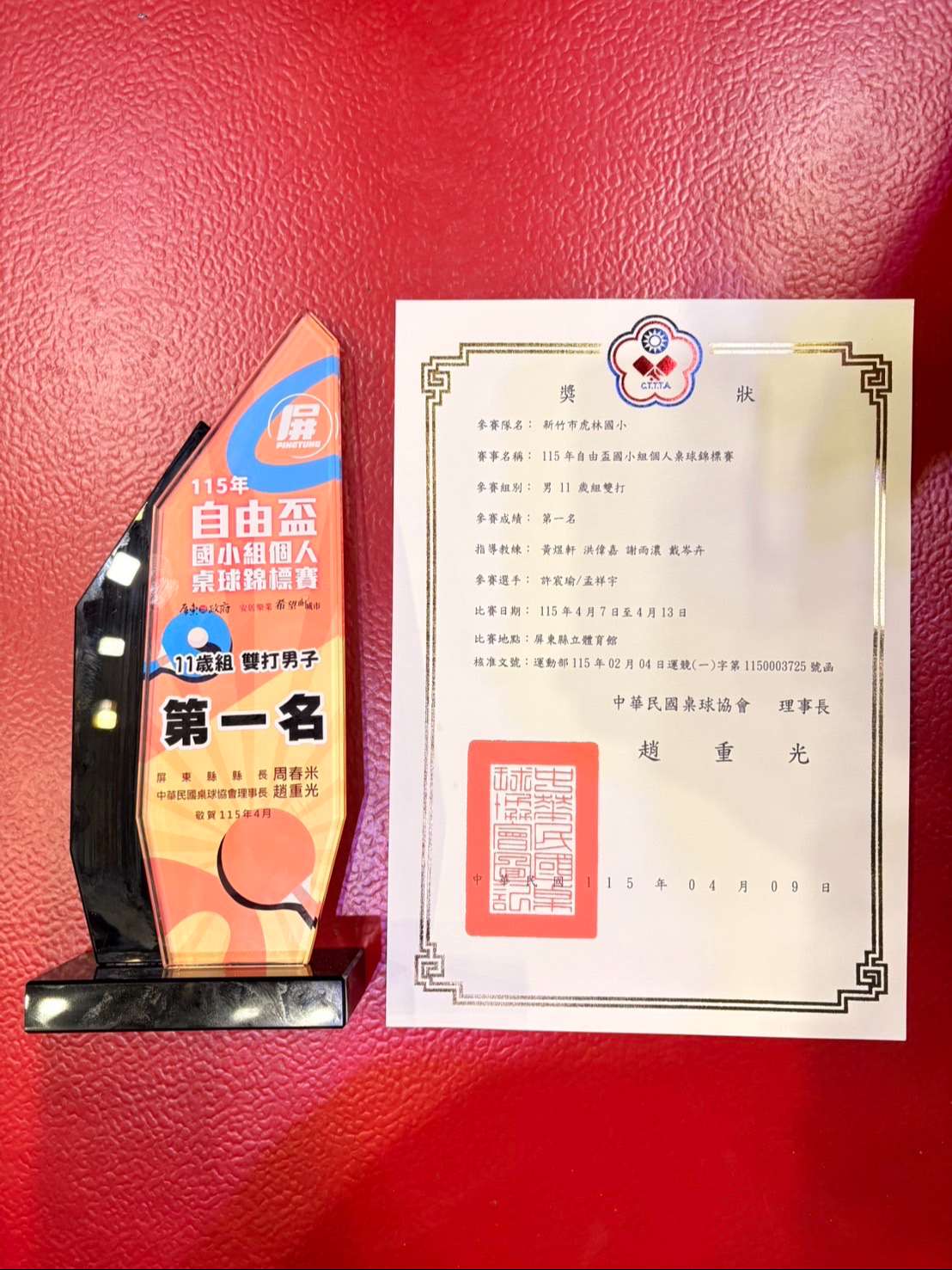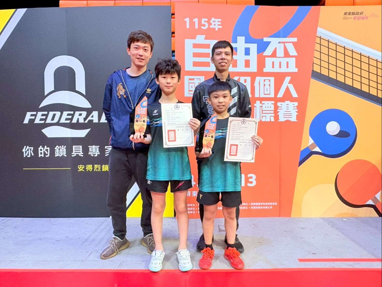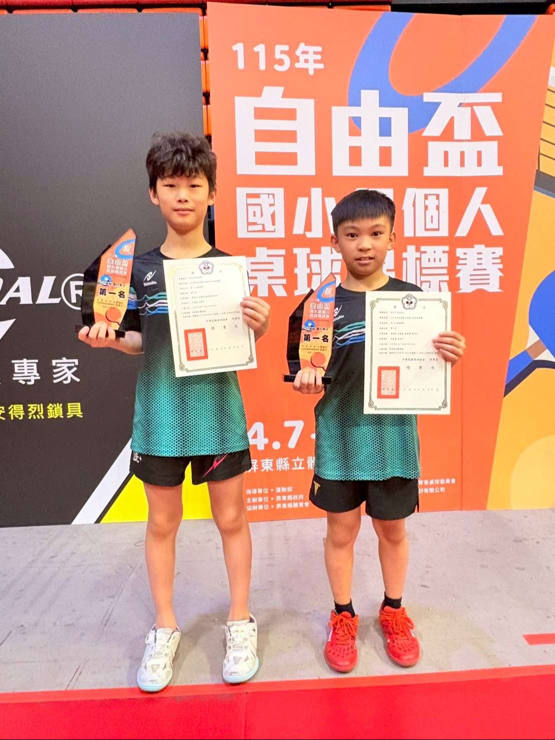 HOT!! 捷報,恭喜本校桌球選手參加115年自由盃全國桌球個人賽 U11男生個人雙打全國冠軍。