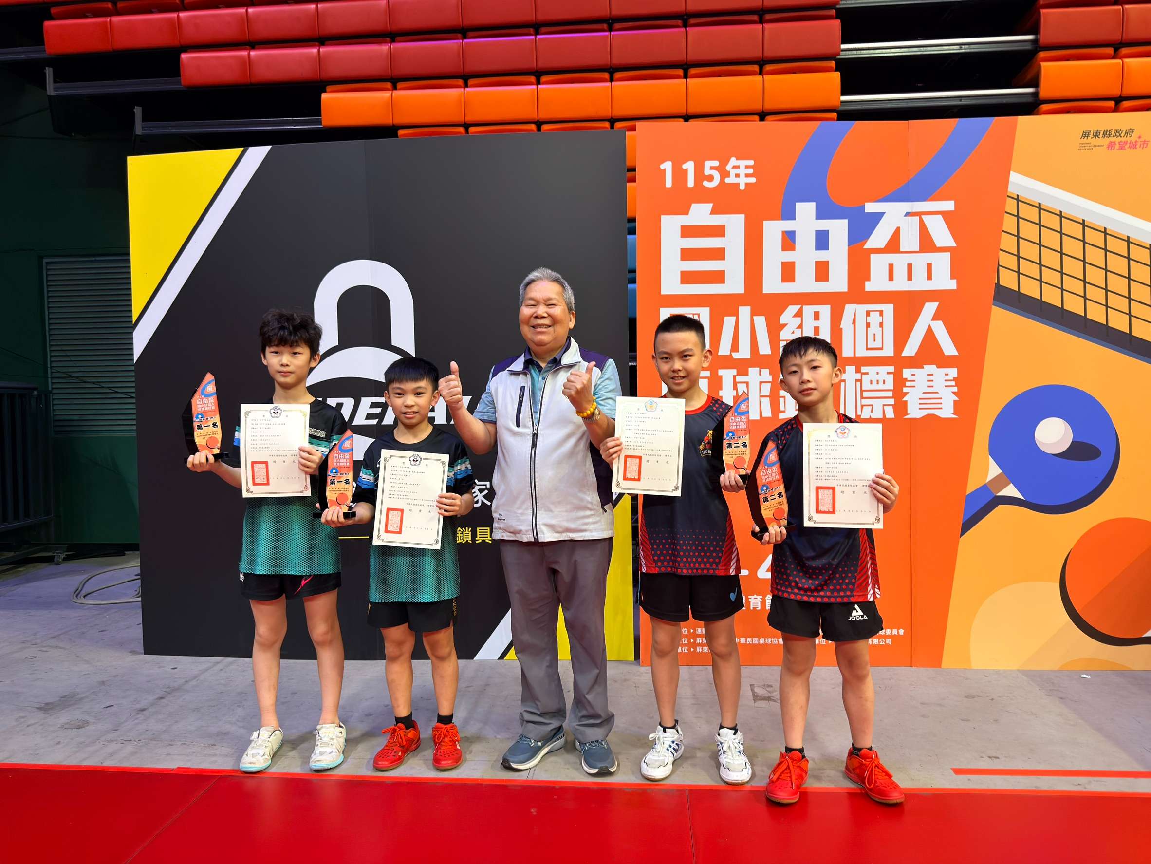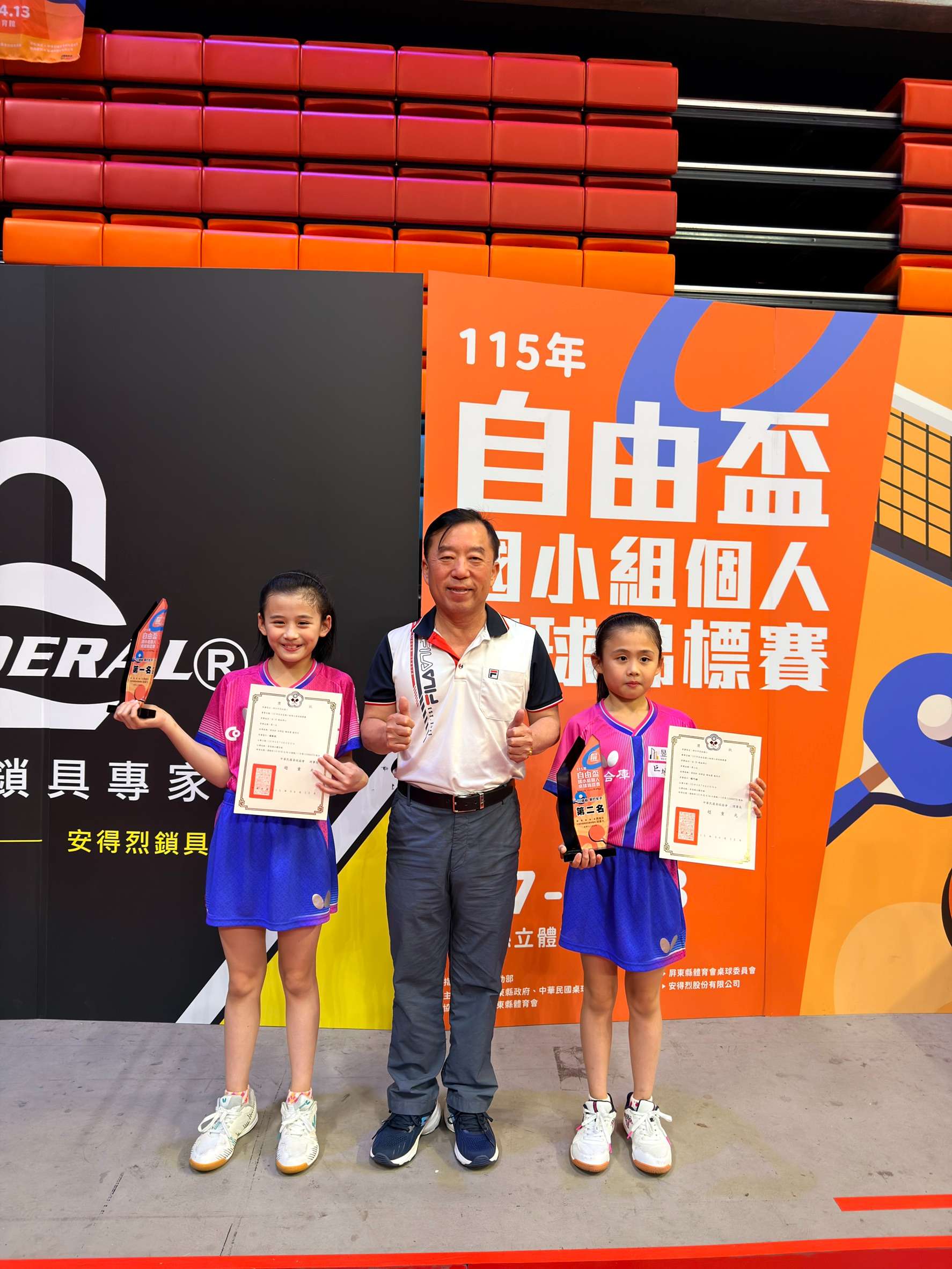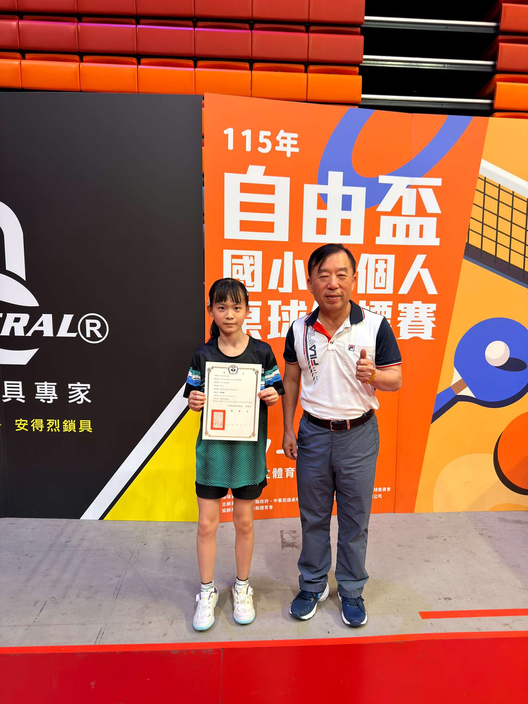 HOT!! 捷報,恭喜本校桌球選手參加115年自由盃全國桌球個人賽 U11男生個人雙打全國冠軍。